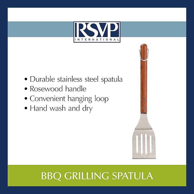 RSVP International Endurance BBQ Grill Spatula Flipper, 18" | Flip Burgers & Other Food w/ Long Handle that Keeps Hands Safe from Fire | Made from Stainless Steel & Rosewood