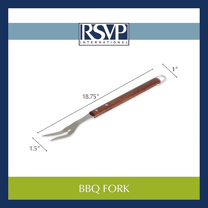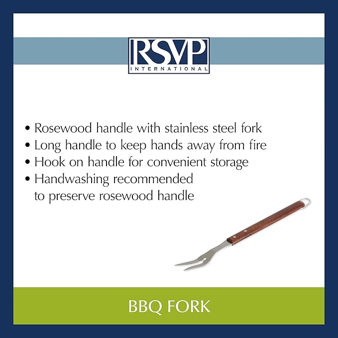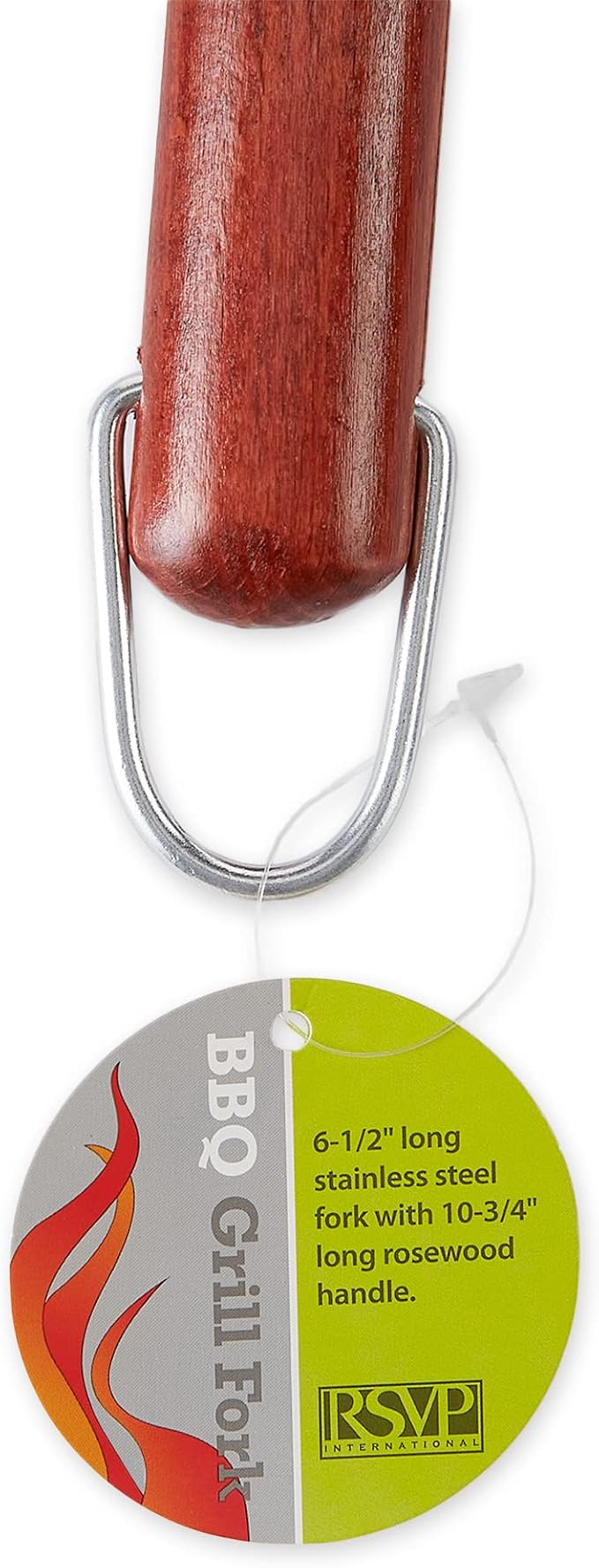 RSVP International Endurance (BQ-FRK) BBQ Grill Fork, 17.25" | Long Handle Keeps Hands Safe from Fire | Made from Stainless Steel & Rosewood