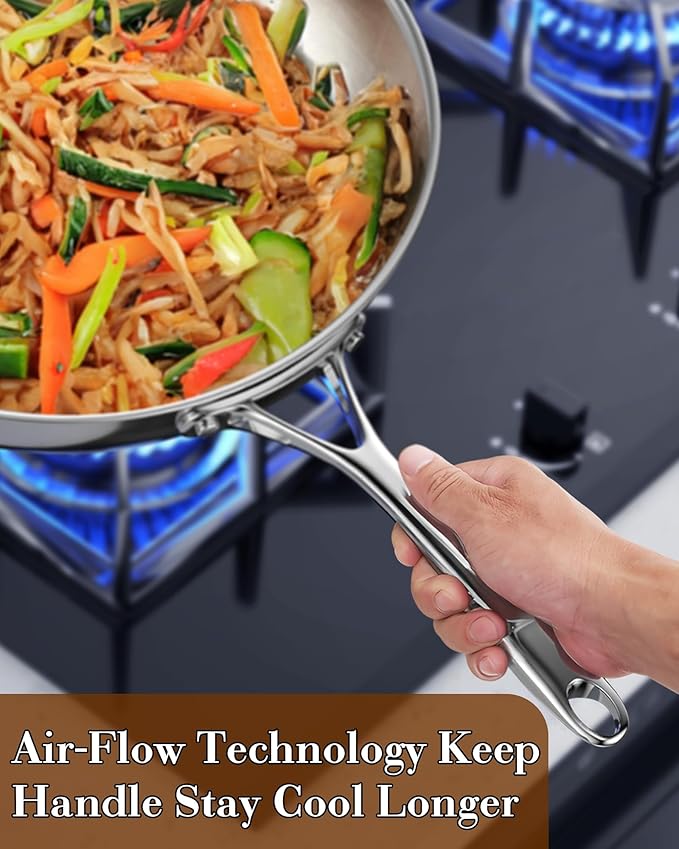 Cooks Standard Stainless Steel Frying Pan 12 Inch, Multi-Ply Full Clad Wok Stir-Fry Cooking Skillet Pans with Dome Lid, Stay-Cool Handle, Dishwasher Safe, Oven Safe 500°F, Silver
