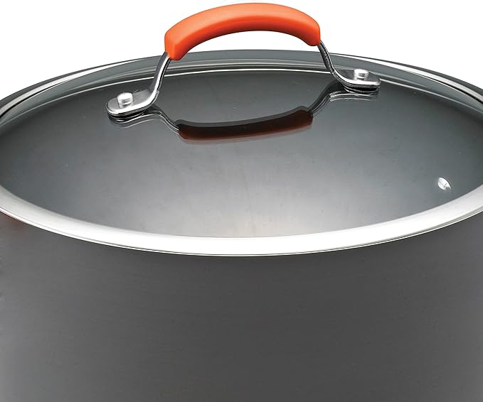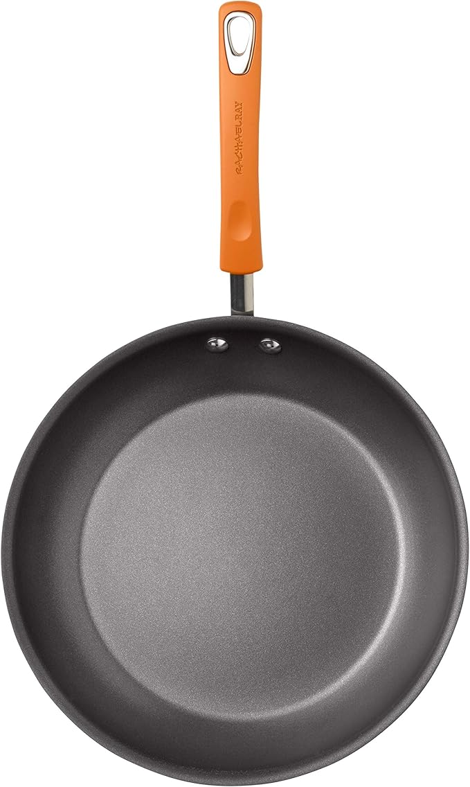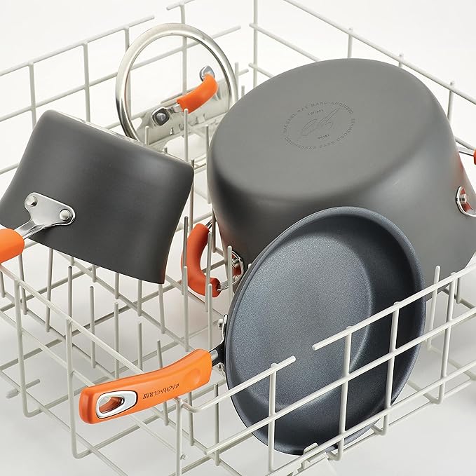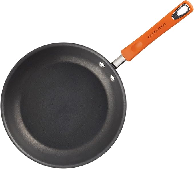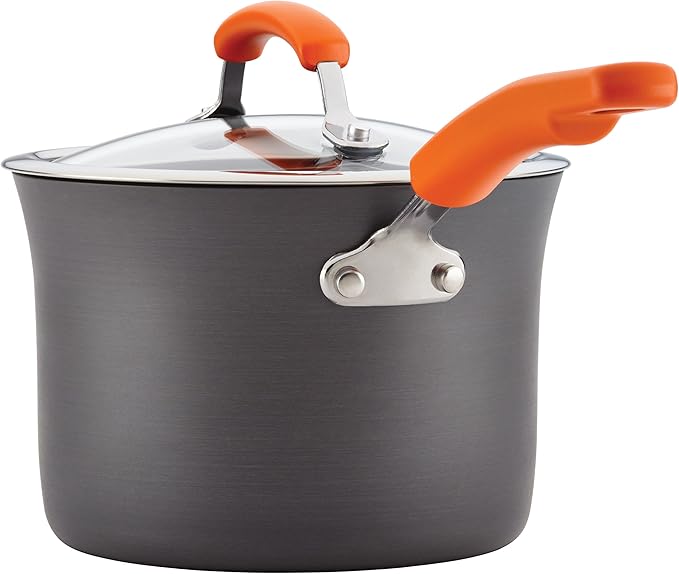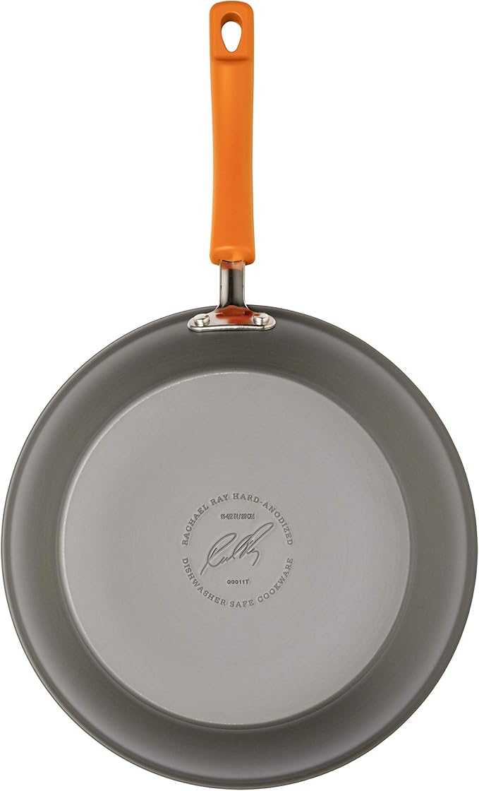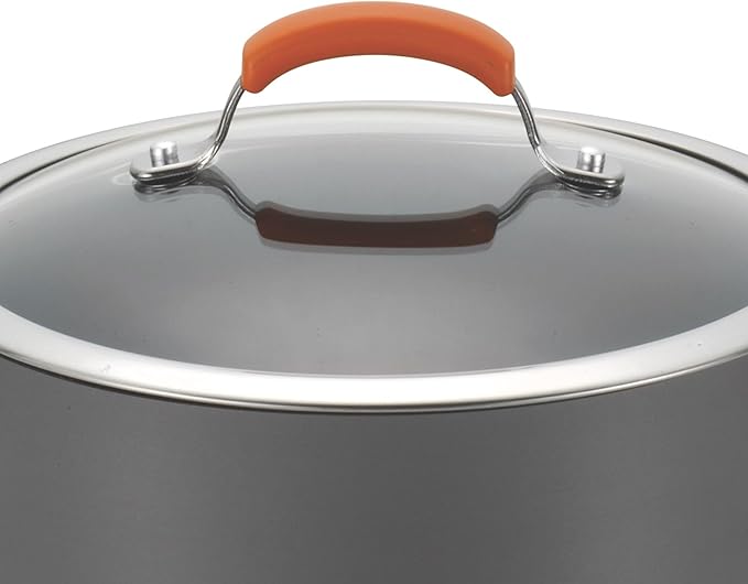 Rachael Ray Brights Hard-Anodized Aluminum Nonstick Cookware Set with Glass Lids, 10-Piece Pot and Pan Set, Gray with Orange Handles