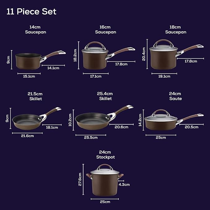 Circulon Symmetry Dishwasher Safe Hard Anodized Nonstick Cookware Pots and Pans Set, 11-Piece, Chocolate