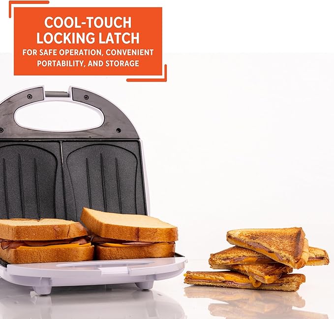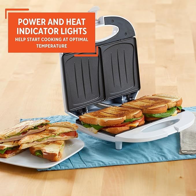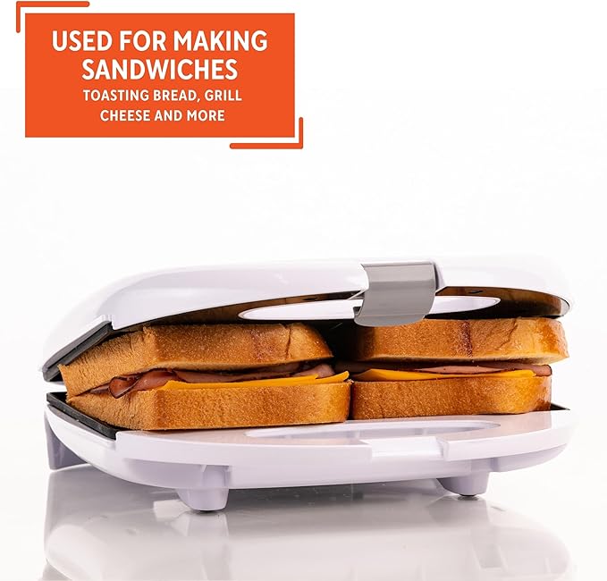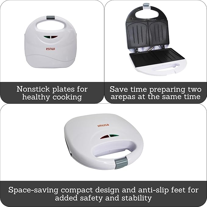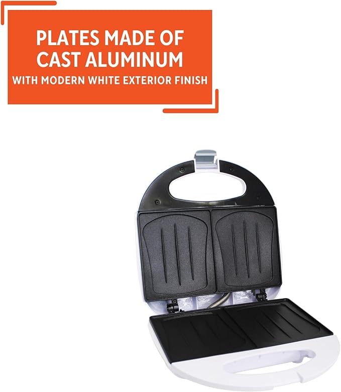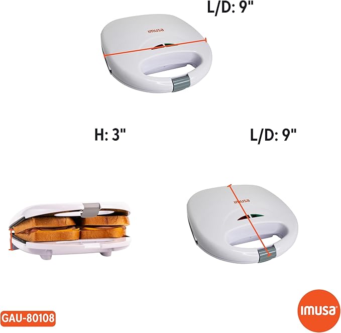 IMUSA 2 Slot Electric Sandwich Maker White Nonstick Press for Grilled Sandwiches and Quick Snacks