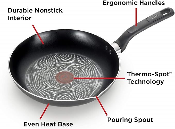 T-fal Initiatives Nonstick Cookware Set 18 Piece, Oven Broiler Safe 350F, Kitchen Cooking Set w/Fry Pans, Saucepans, Stockpots, Skillet, Spoons, Lids Pots and Pans Set Non Stick Dishwasher Safe Black