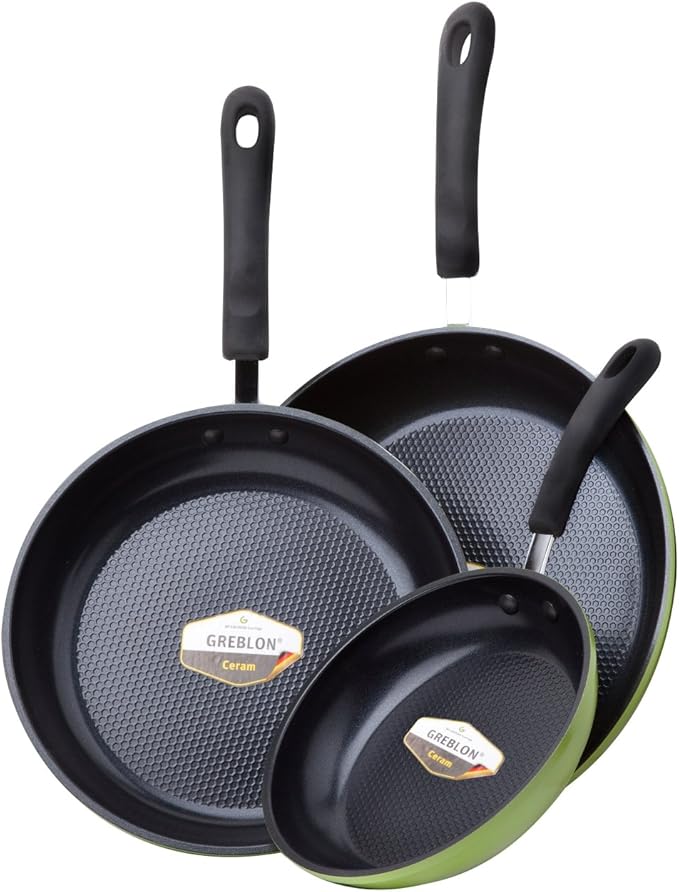 Green Earth Frying Pan 3-Piece Set by Ozeri (8", 10", 12") – 100% PTFE, PFC, APEO, GenX, NMP and NEP-Free German-Made Coating