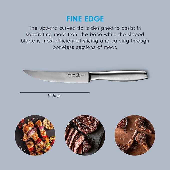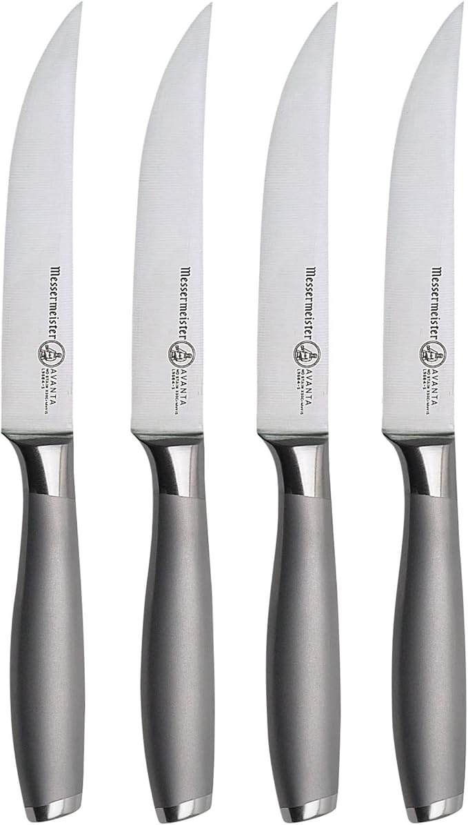 Messermeister Avanta 5” Fine Edge Steak Knife Set - German X50 Stainless Steel - Rust Resistant & Easy to Maintain - Includes 4 Steak Knives