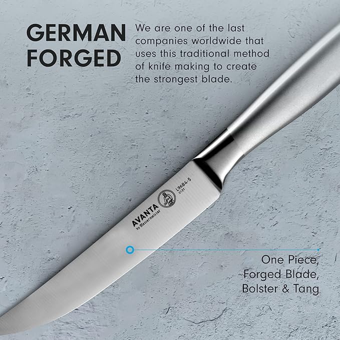 • STEAK KNIFE SET - Avanta knives were developed for one of the leading culinary schools in North America. This set was designed with uncompromising attention to detail, featuring rounded, stainless steel handles for style, comfort, and durability.
