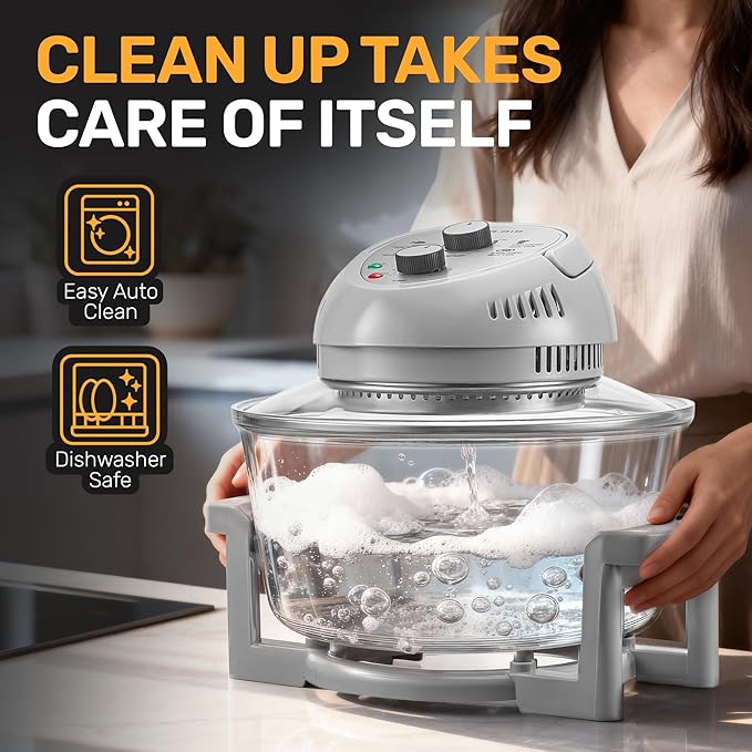 Big Boss 16Qt Large Glass Air Fryer Non Toxic – Family Sized Large Halogen Oven Cooker with 3 Cooking Sections, Stainless Steel Racks, French Fries, Chicken, No Preheat, Self Cleaning, Dishwasher Safe