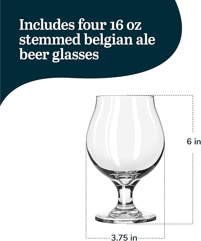 Libbey Craft Brews Classic Belgian Beer Glasses, Dishwasher Safe Beer Glasses Set of 4 for Belgian Ale, Tulip Beer Glasses