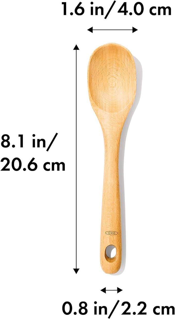 About This 8.125 in/20.6 cm by 1.75 in/4.4 cm Made of solid beechwood Safe for non-stick cookware Natural oil finish... Read more