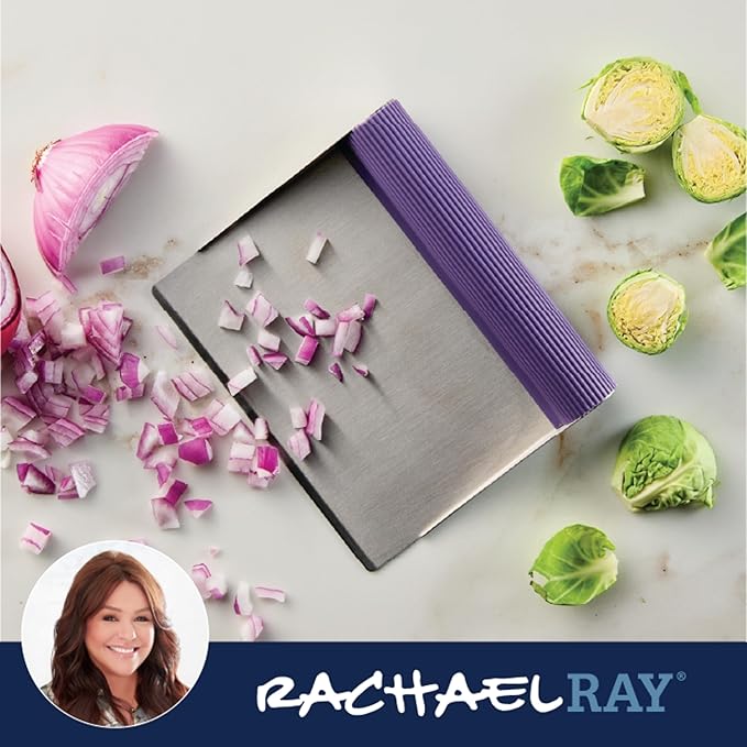 Rachael Ray Tools and Gadgets Stainless Steel Pastry Scraper / Bench Scrape / Kitchen Tool for Baking and Cooking / Dishwasher Safe, Purple