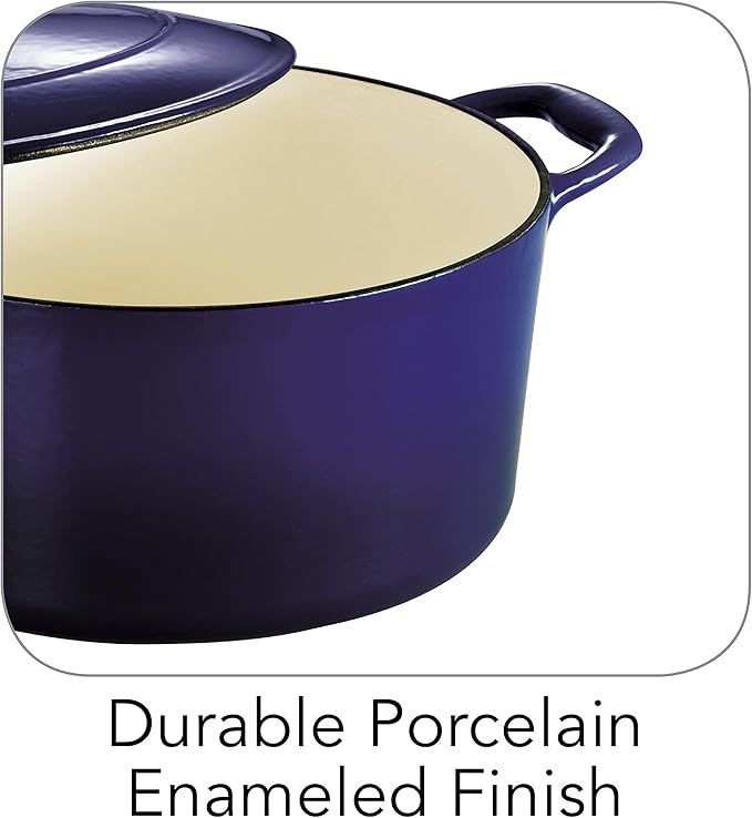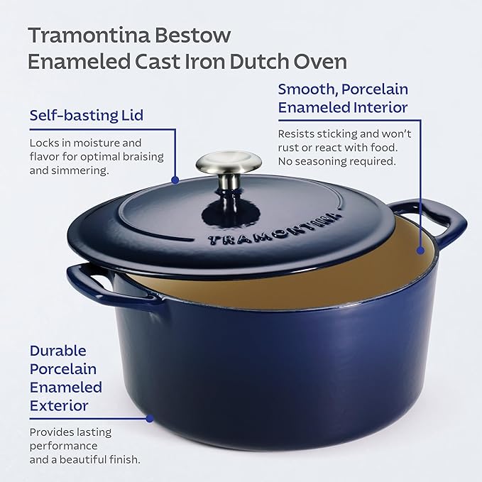 Tramontina Bestow Enameled Cast Iron Dutch Oven Pot with Lid, Round 5.5-quart, Blue