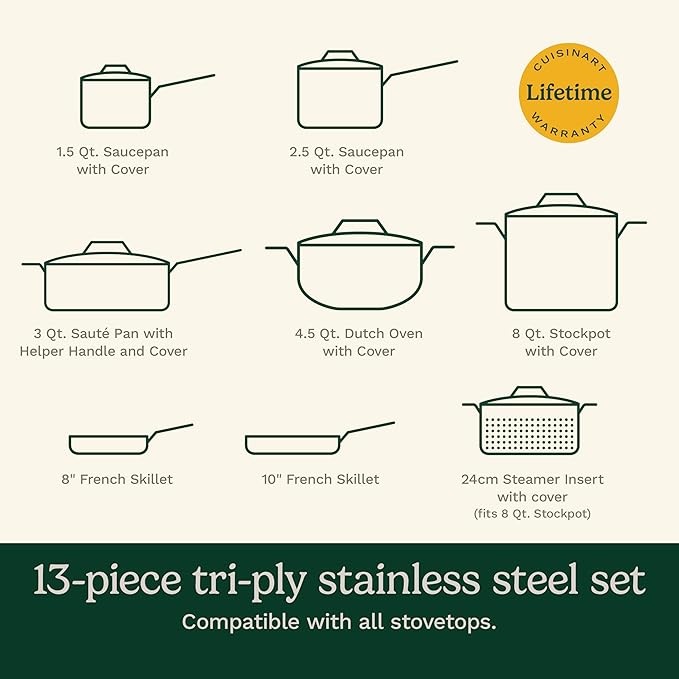 Cuisinart FCT-13 13-Piece Cookware Set French Classic Tri-Ply, Silver