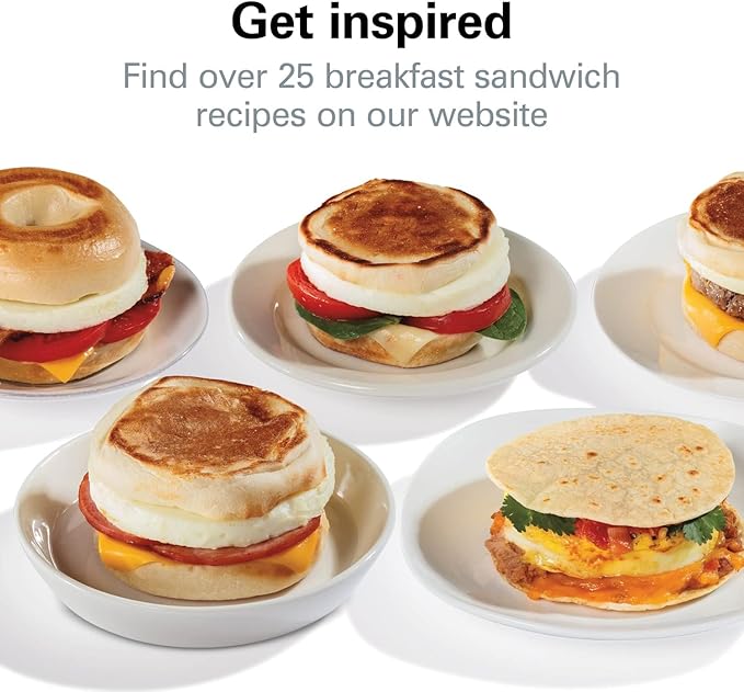 Hamilton Beach Breakfast Sandwich Maker with Egg Cooker Ring, Customize Ingredients, Perfect for English Muffins, Croissants, Mini Waffles, Perfect White Elephant Gifts, Silver (25475)