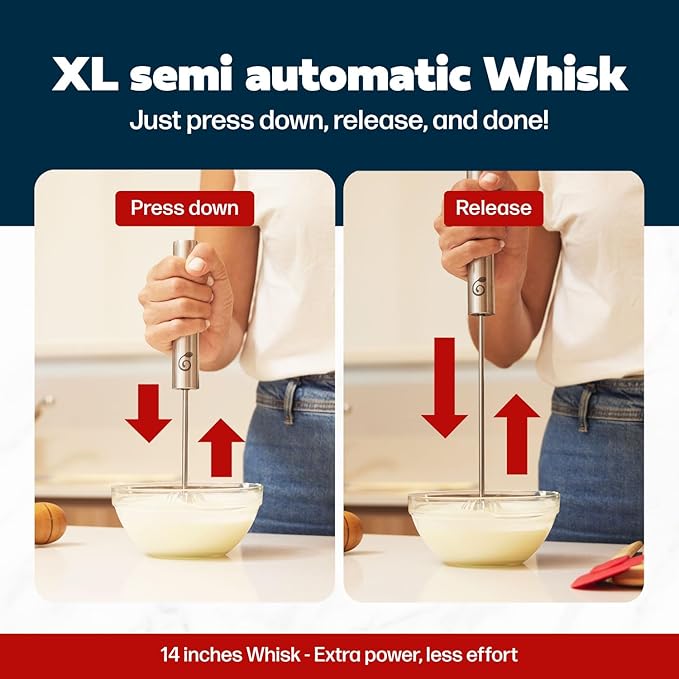 About This QUICK AND EASY: Our stainless steel semi-automatic whisk is super fast and ultra-easy to use. To rotate the... Read more
