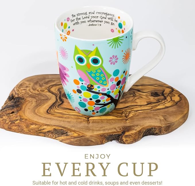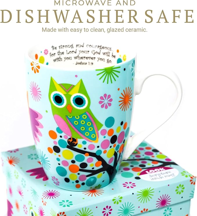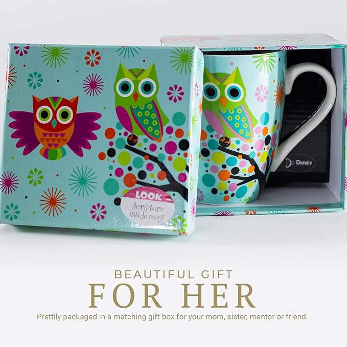 Divinity Boutique Owl Mug - Inspirational Ceramic Coffee Mug with Scripture for Women, Mom, Friends, Owl Lovers that is Colorful and Dishwasher Safe