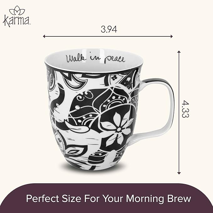 Karma Ceramic Black and White Boho Mug, 1 Count (Pack of 1), Elephant , 16 oz