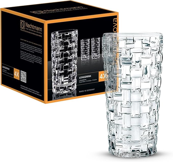 Nachtmann Dancing Stars Bossa Nova Collection, Long Drink Glass Set of 4 Clear Crystal Glass, for cocktails and cold Beverages 14-Ounce, Dishwasher safe