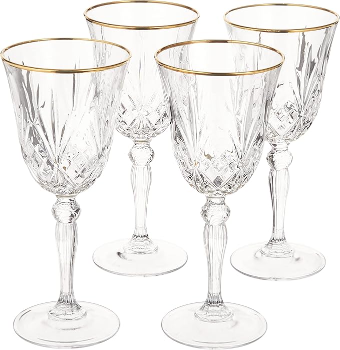Lorren Home Trends Siena Collection Crystal Red Wine Glass with Gold Band Design, Set of 4, 7.5 fluid ounces