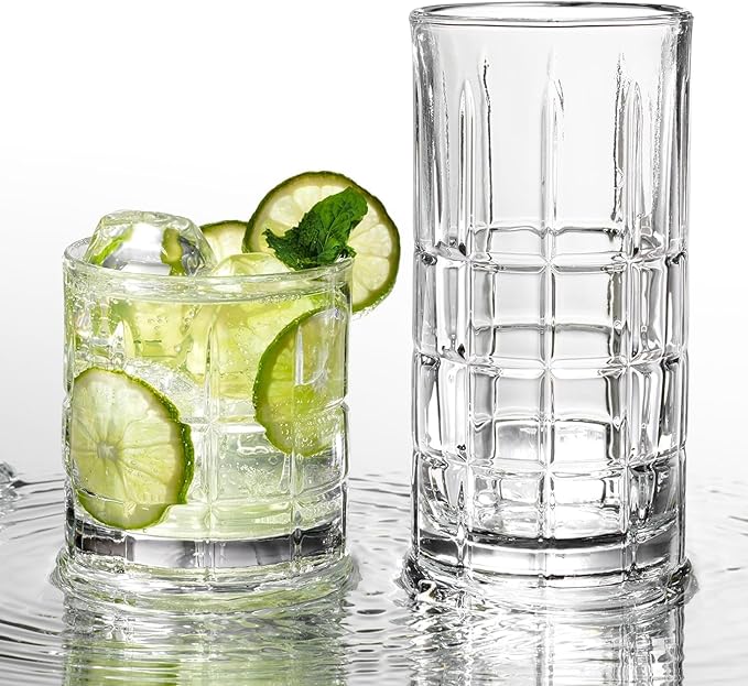 Anchor Hocking Manchester Drinking Glasses Set 16 Piece Set (8 Rocks Glasses & 8 Tumbler Glasses)