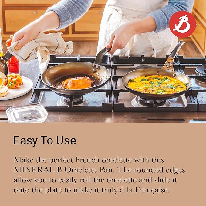 De Buyer MINERAL B Carbon Steel Omelette Pan - 9.5” Diameter, 7.7” Cooking Surface - PFAS, PFOA & PFOS Free - Made in France