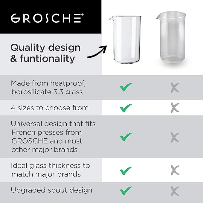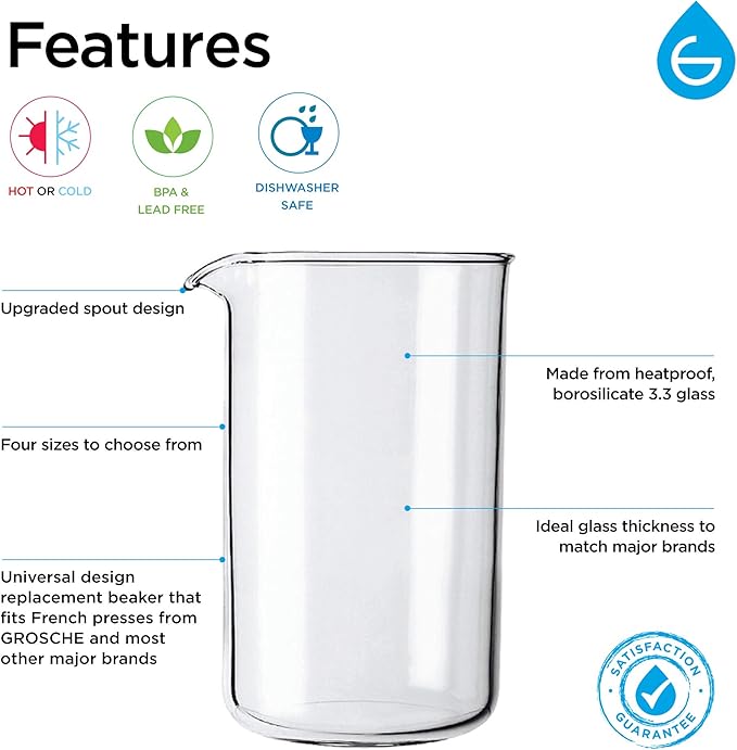 GROSCHE Borosilicate 3.3 Glass Universal Replacement Beaker for French Coffee and Tea Press Makers, 51 fl oz, Large