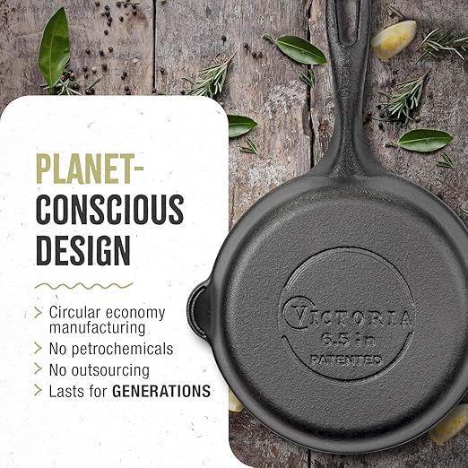 Victoria 6.5 Inch Mini Cast Iron Skillet. Small Frying Pan,Seasoned with 100% Kosher Certified Non-GMO Flaxseed Oil (SKL-206)