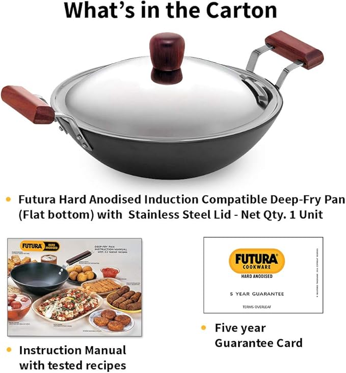 Hawkins Futura 2.5 Litre Deep Fry Pan, Hard Anodised Kadai with Stainless Steel Lid, Flat Bottom Induction Kadhai, Black (IAD25S)