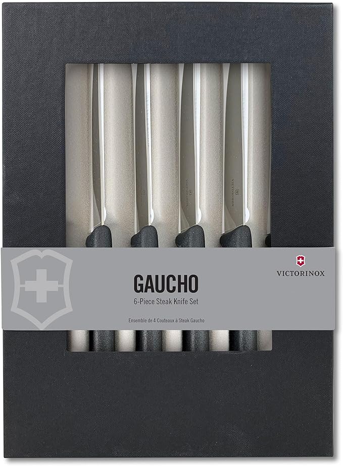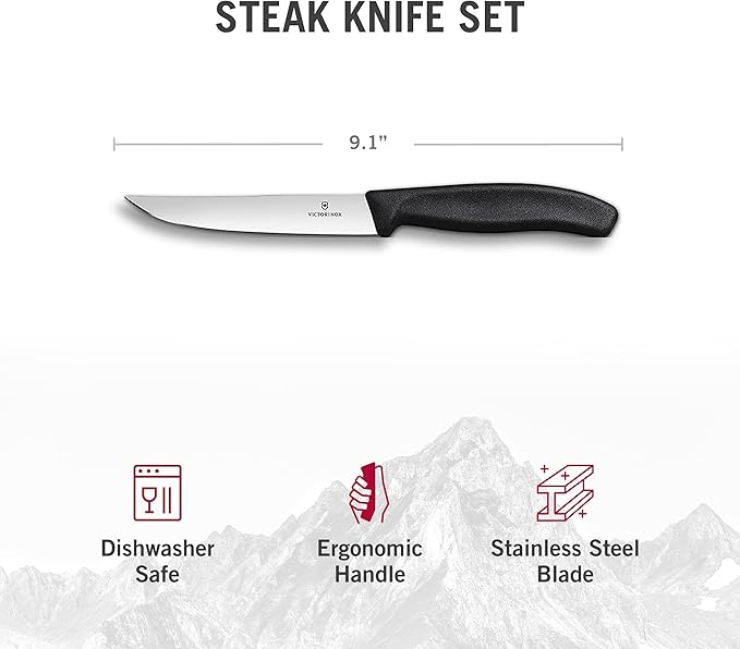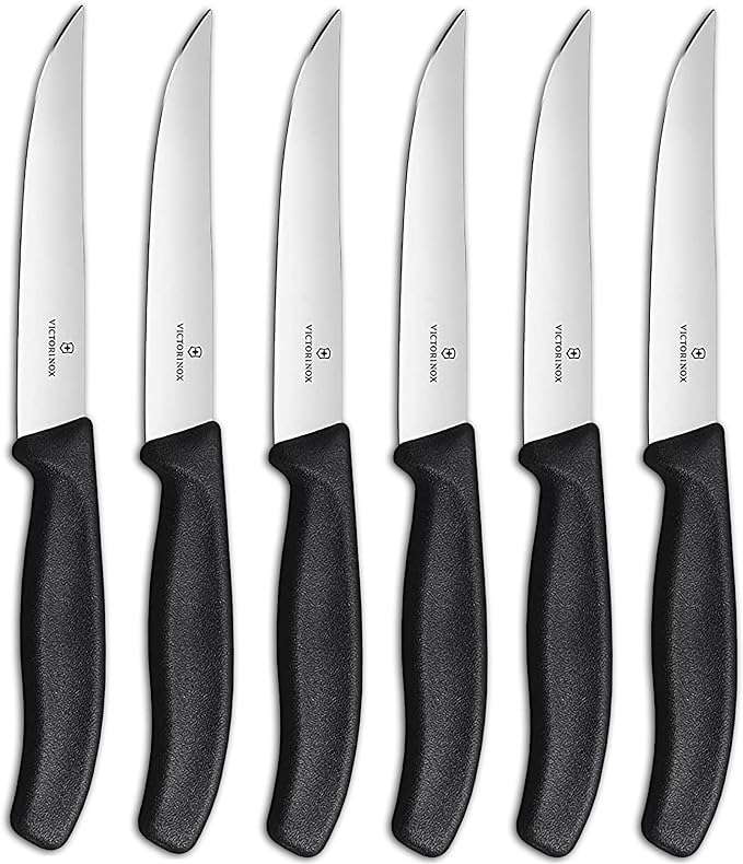 Victorinox Swiss Classic Steak Knives - Kitchen Utensils - Ergonomic, Stainless Steel Meat Knives - Black Handles, Straight Edge, 6-Piece Set