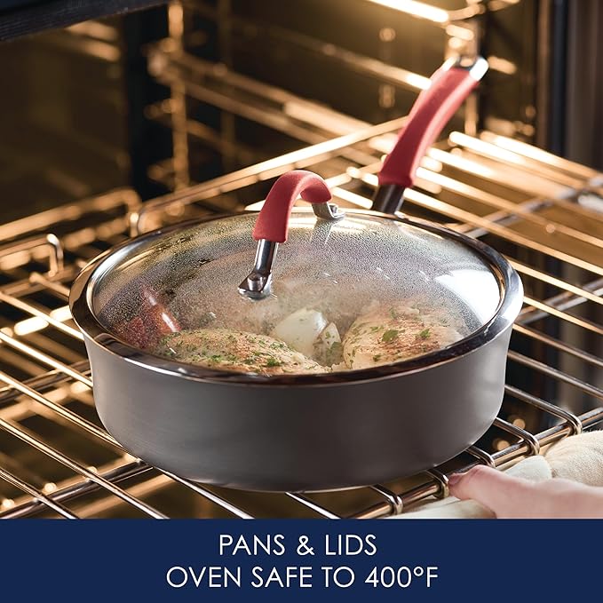 Rachael Ray - 87630 Rachael Ray Cucina Hard Anodized Nonstick Cookware Pots and Pans Set, 12 Piece, Gray with Red Handles
