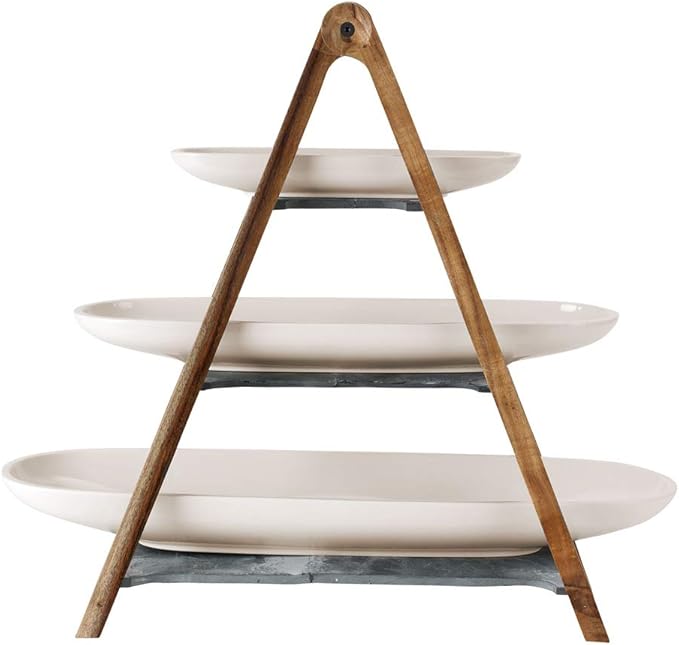 About This Three-tier cake stand made of natural materials with oval porcelain bowls for stylish serving of finger food at... Read more