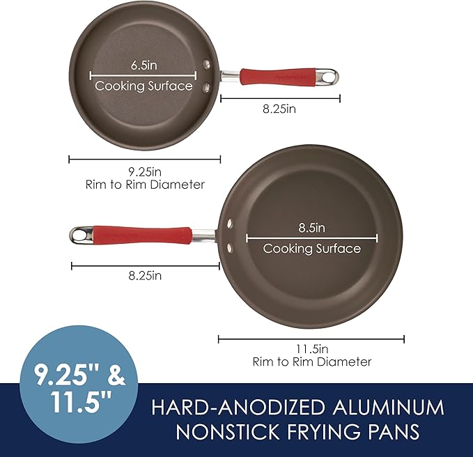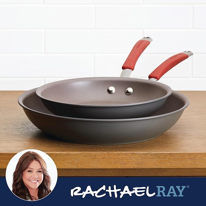 Rachael Ray 87633 Cucina Hard Anodized Nonstick Frying Pan Set / Fry Pan Set / Hard Anodized Skillet Set - 9.25 Inch and 11.5 Inch, Gray