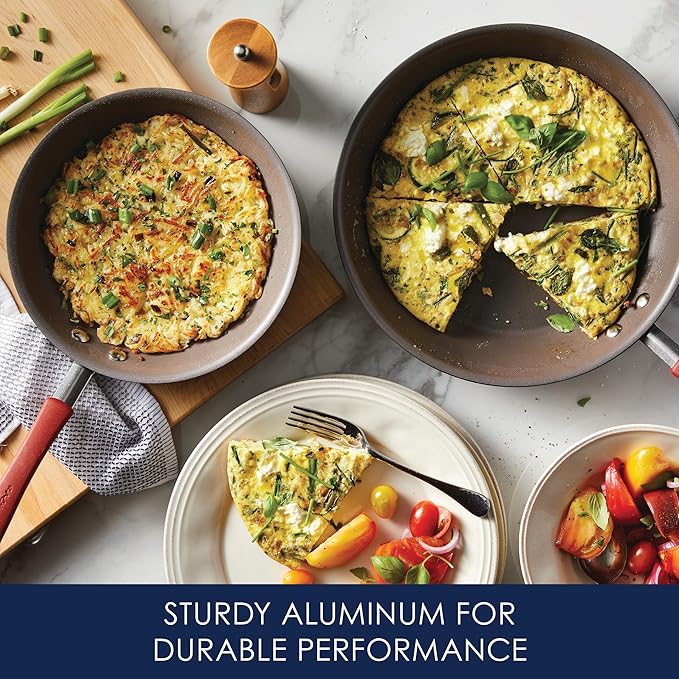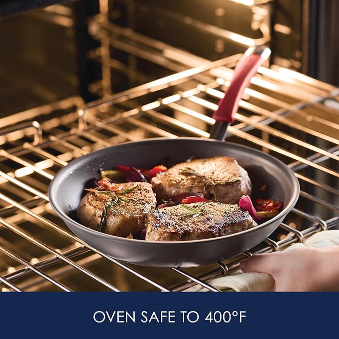 About This Durable frying pans with even heat distribution: These fry pans feature durable hard-anodized aluminum construction that heats quickly... Read more