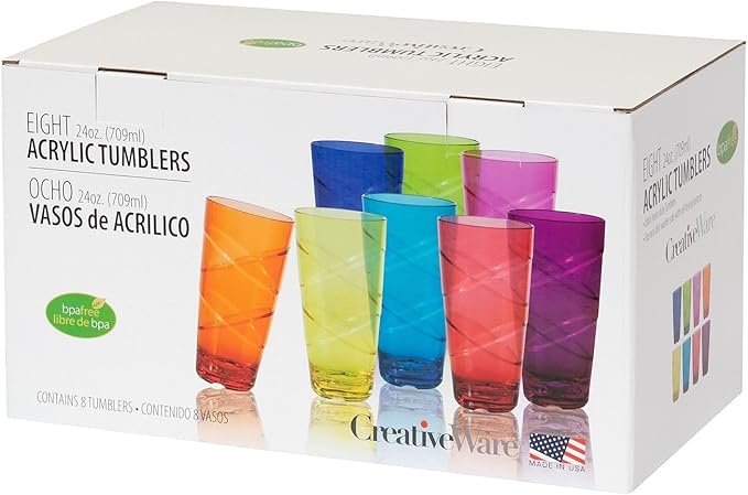 CreativeWare Circus Set of 8, 24 Ounces Tumbler Set, 24 oz, Multicolor (CIR08MULTI)