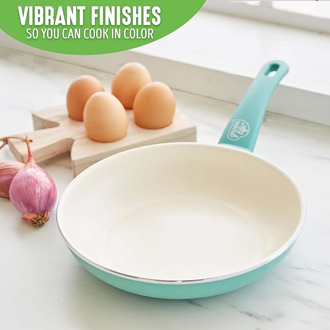 GreenLife Nonstick 8" Frying Pan Skillet, Non-Toxic PFAS-Free Ceramic Nonstick, Dishwasher & Oven Safe, Stay-Cool Handles, Wobble Free, Turquoise