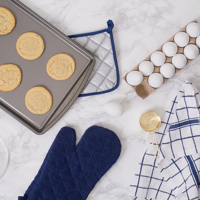DII Basic Terry Collection 100% Cotton Quilted, Oven Mitt, Nautical Blue, 2 Piece