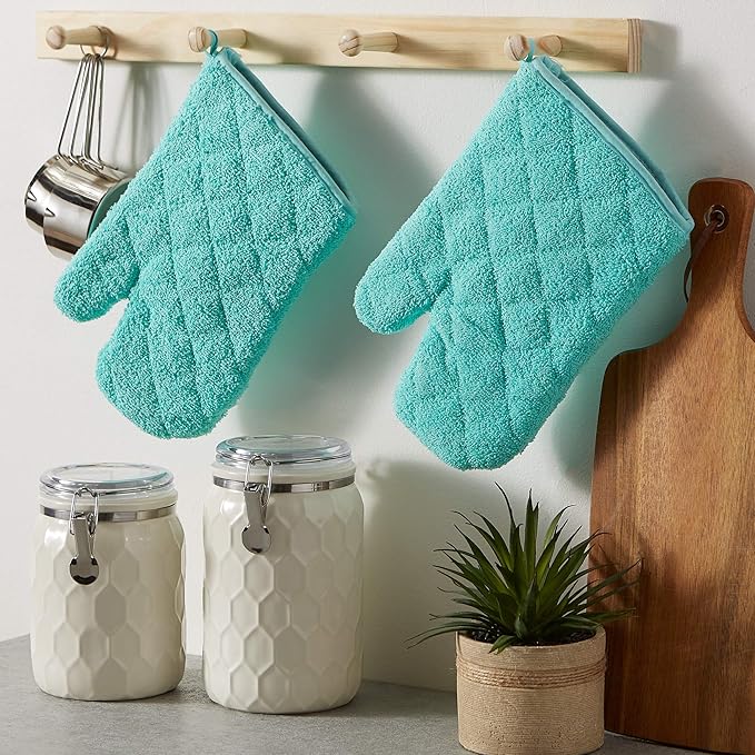 DII Basic Terry Collection 100% Cotton Quilted, Oven Mitt, Aqua, 2 Piece