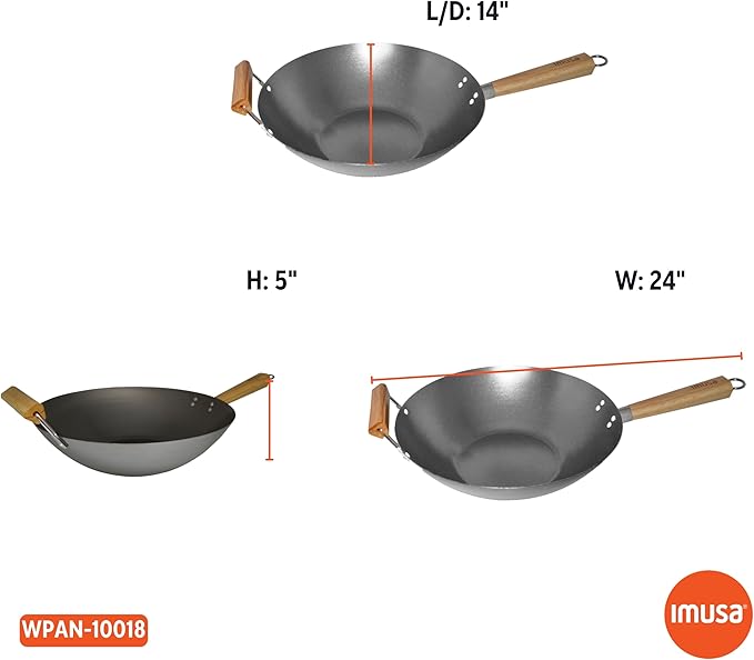 Imusa 14in Carbon Steel Wok with Wood Handles