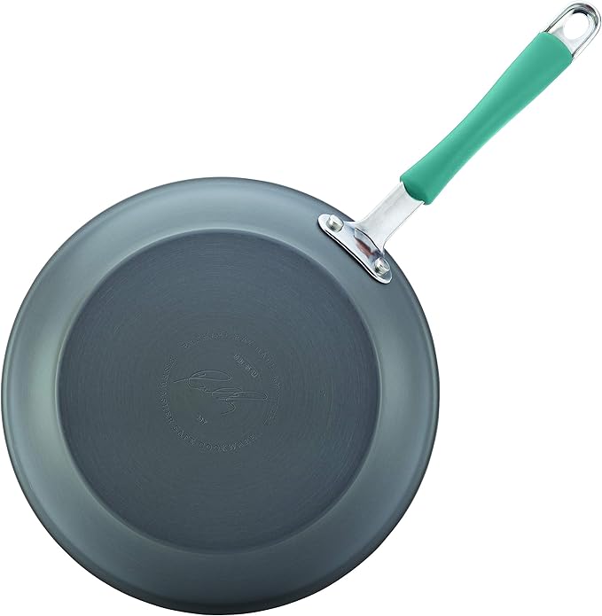 Rachael Ray 87643 Cucina Hard Anodized Nonstick Frying Pan Set / Fry Pan Set / Hard Anodized Skillet Set - 9.25 Inch and 11.5 Inch, Gray with Blue Handles