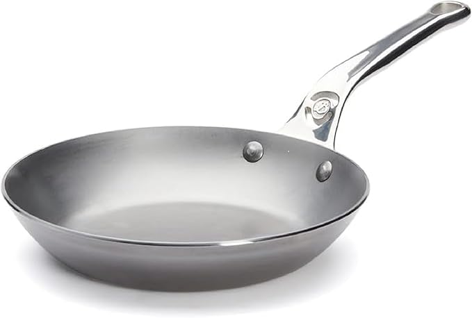 De Buyer MINERAL B Pro Carbon Steel Fry Pan - 8” Diameter, 5.5” Cooking Surface - Ideal for Searing, Sauteing & Reheating - Made in France