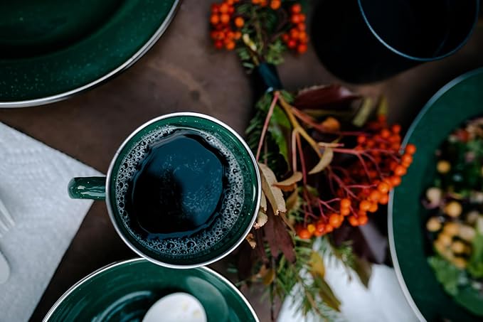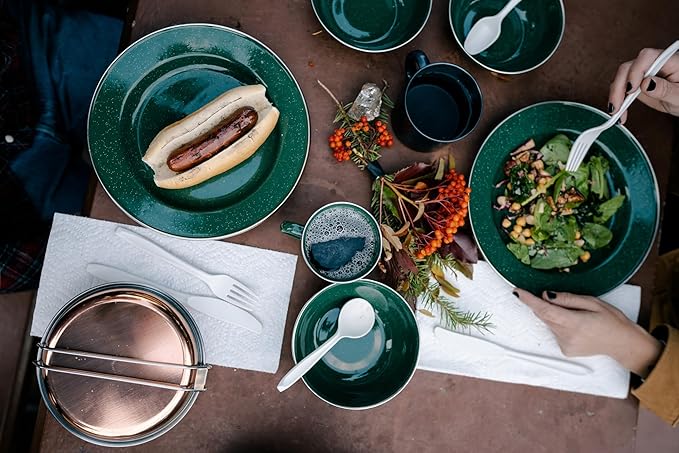Stansport Deluxe 24-Piece Enamel Tableware Set - Enamel Plates and Bowls Lightweight and Durable Camp Dish Set for Camping and Backpacking Plates and Bowls for 4 People