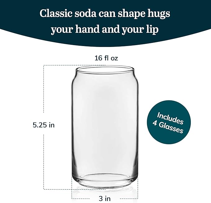 Libbey Can Shaped Beer Glass - 16 oz - 4 PACK w/ Pourer