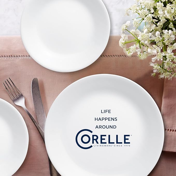 Corelle Vitrelle 18-Piece Service for 6 Dinnerware Set Triple Layer Glass and Chip Resistant, Lightweight Round Plates and Bowls Set, Winter Frost White