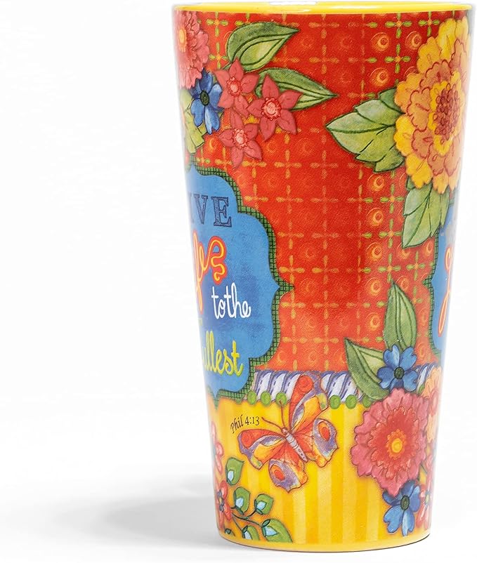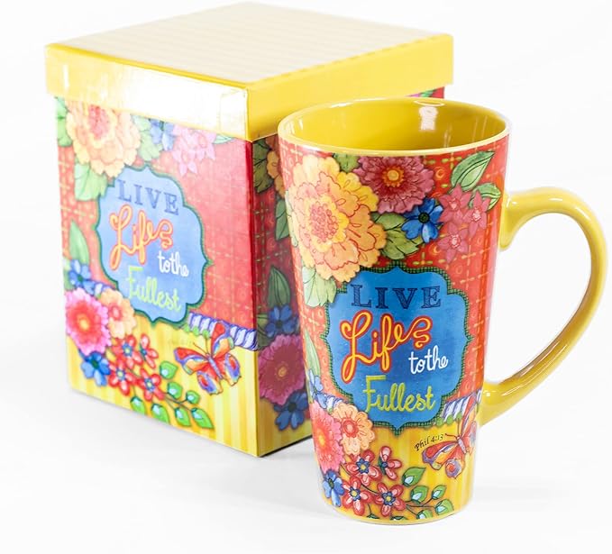 About This Colorful inspirational stoneware mug Holds 16 ounces Glazed insides and handles Coordinating gift box Dishwasher and microwave safe... Read more