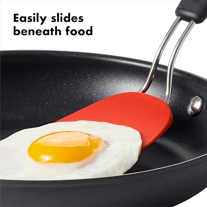 About This Flexible nylon head Safe for non-stick cookware and bakeware Heat resistant to 400 Degree Soft, comfortable, non-slip handle... Read more