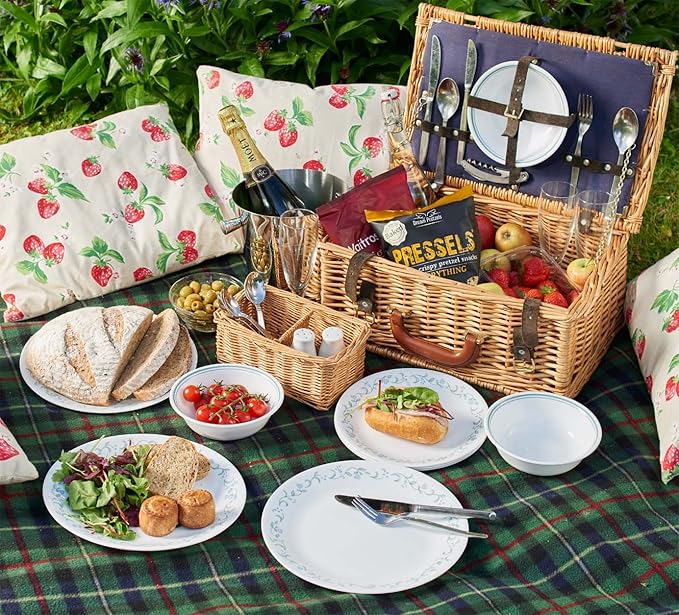 Corelle Vitrelle Glass 12-Piece Country Cottage Chip and Break Resistant Dinner Set, Green/Blue - 3029B