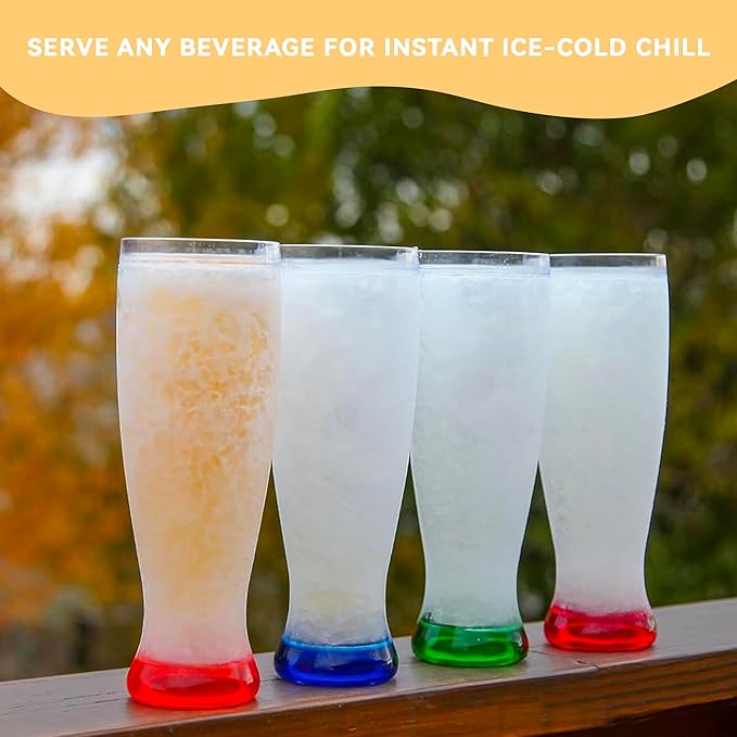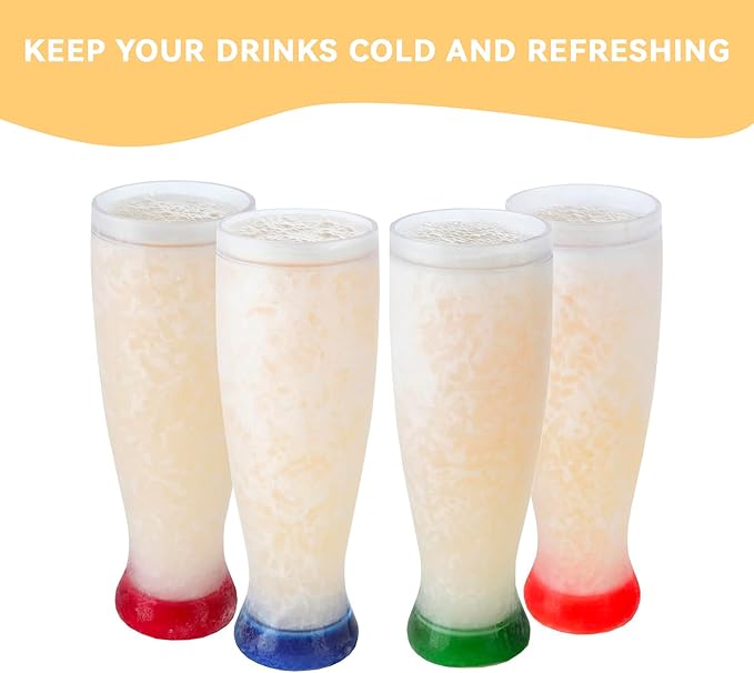 Lily's Home 16 oz Set of 4 Freezer Beer Mugs, Double Wall, Insulated with Liquid Gel Plastic Freezable Glasses, Glass for Freezer, Chiller Frosty Cup,for party