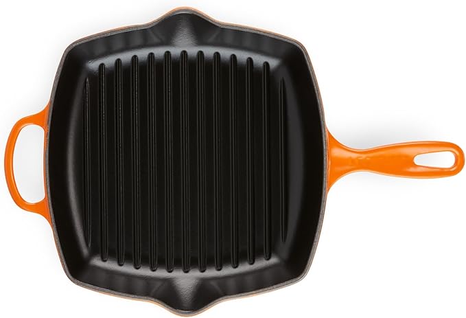 Le Creuset Enameled Cast Iron Signature Square Skillet Grill, 10.25", Flame