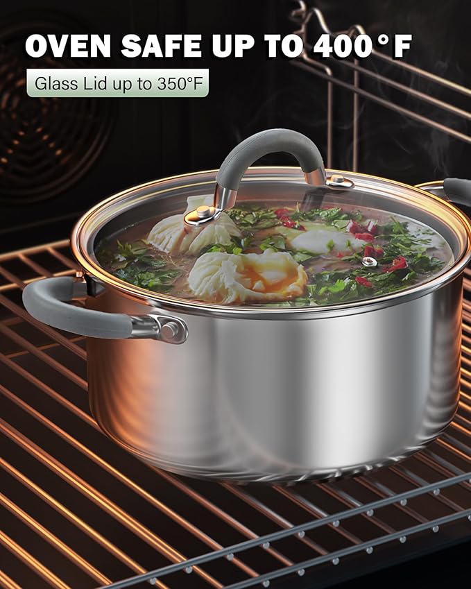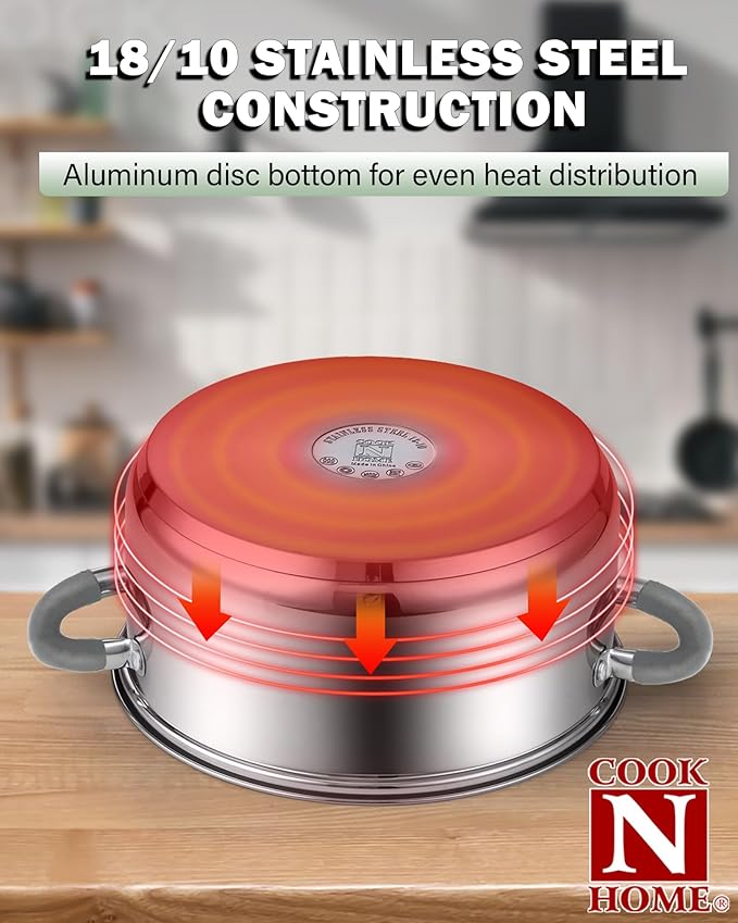 Cook N Home Kitchen Cookware Set, 12-Piece Basics Stainless Steel Pots and Pans Set with Grey Silicone Handle, Silver