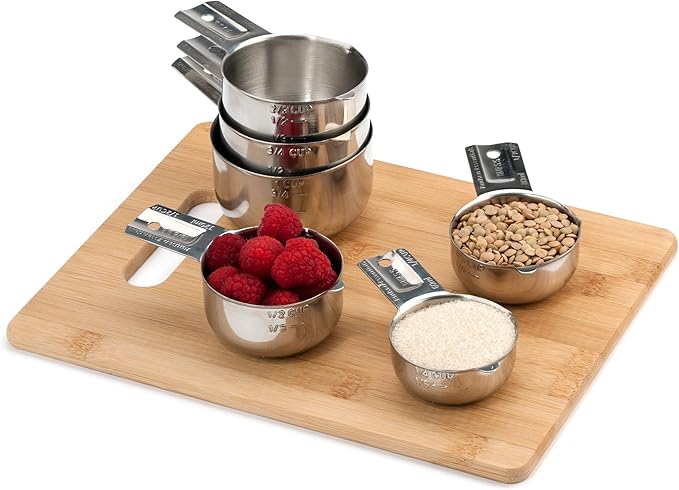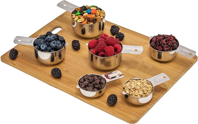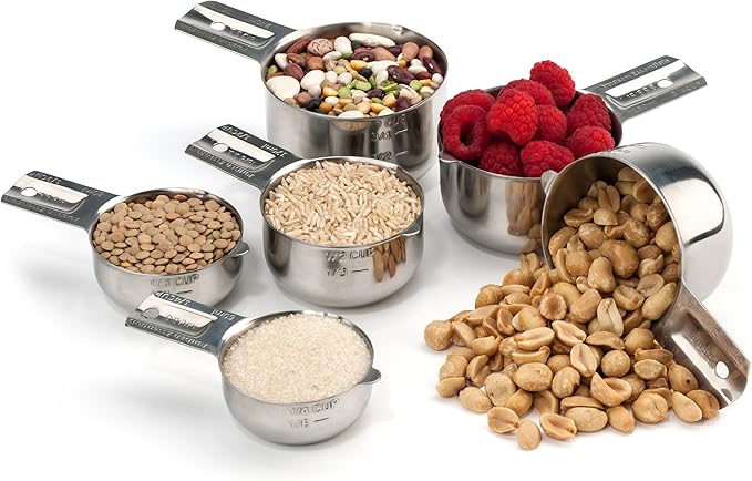 About This Complete set of six: includes 1/4, 1/3, 1/2, 2/3, 3/4 and 1 cup premium stainless steel measuring cups... Read more