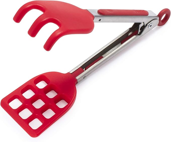 Tovolo Waffle Tongs Mini Silicone Kitchen Tongs for Cooking Serving Flat Stainless Steel Small Tongs with Silicone Tips for Salads Belgian Waffles Air Fryer Appetizers Dishwasher Safe Candy Apple Red